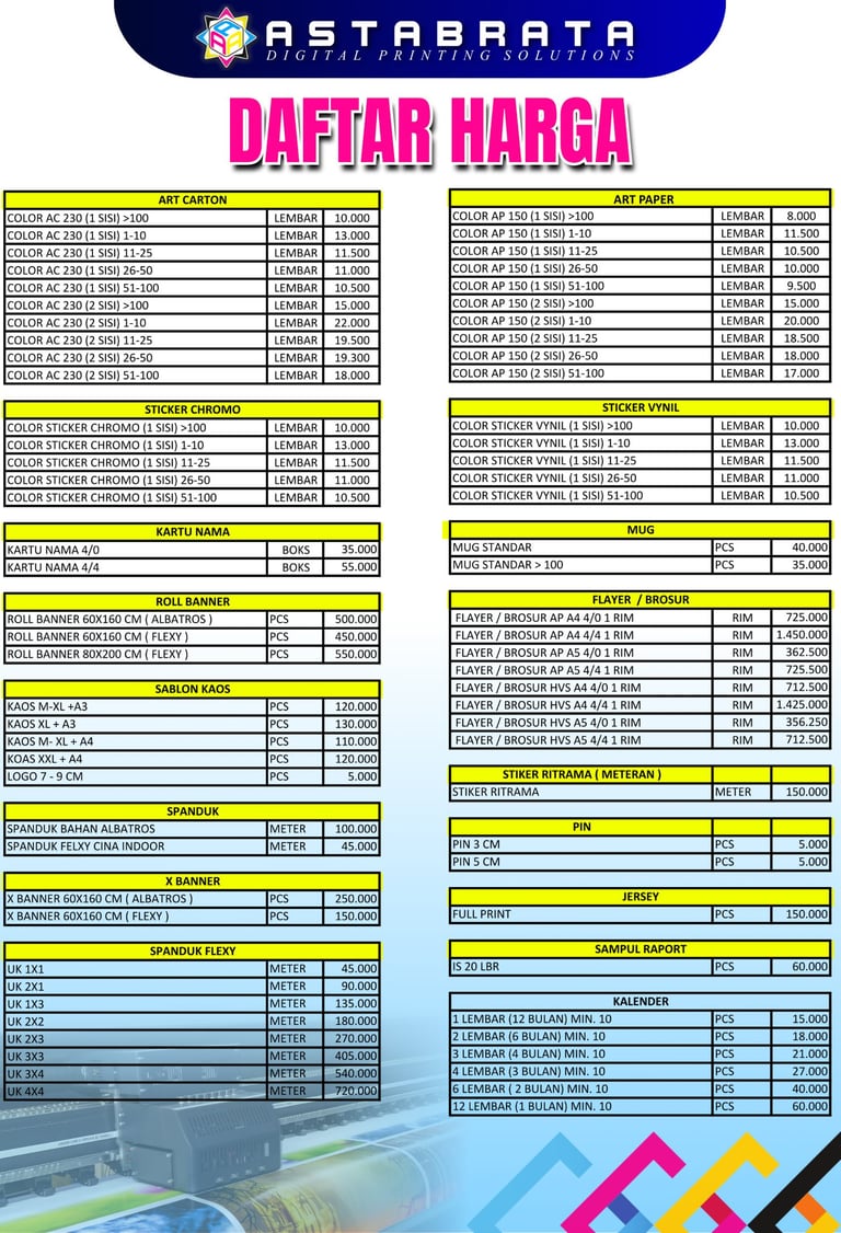 Daftar Harga Produk